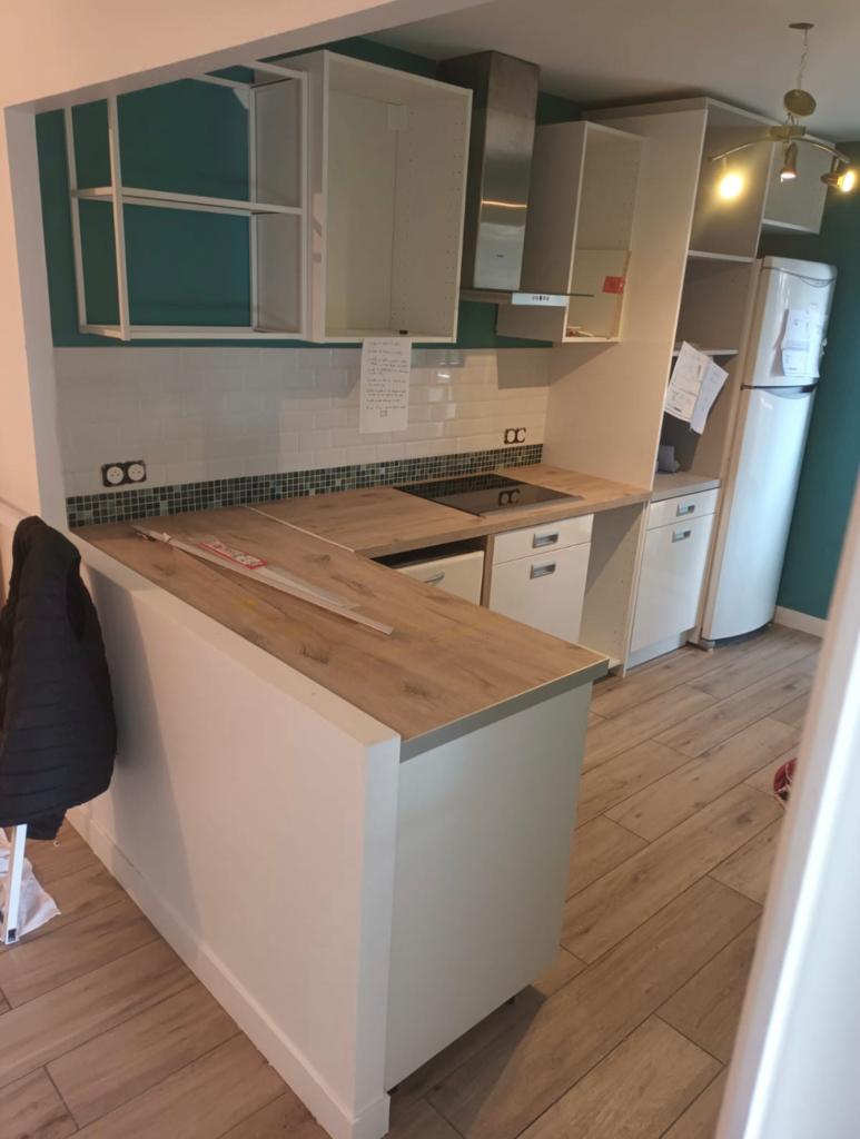 - Pose d’un plan de travail (taille et coloris au choix)